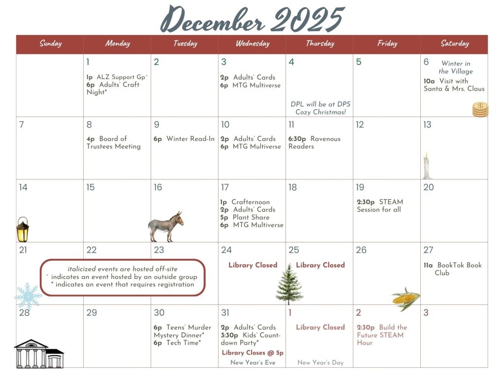 Another year is wrapping up, but we’re still going strong! Here are some of the things you could do if you stop in to the Dansville Public Library this December.